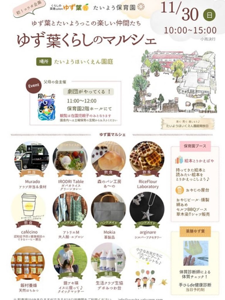 自然いっぱいの、たいよう保育園でのマルシェに出店します!